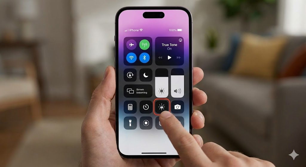 제어 센터에서 화면 밝기 바를 꾹 눌러보세요. 하단에 True Tone 버튼이 없다면 정품 액정이 아니거나 액정 정보를 복사하지 않은 저가형 사설 수리 액정입니다.