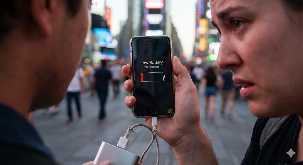 아침에 배터리를 100퍼센트로 충전하고 나왔는데 점심 때 배터리가 부족하다면 매우 심각한 상태예요.