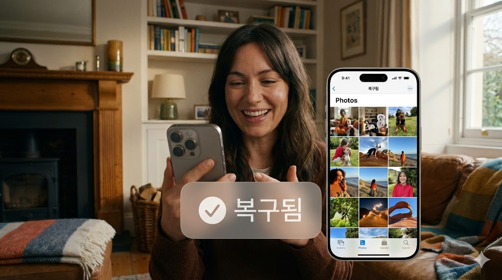 초기화 없이 삭제된 사진을 복구해 준다는 사설 소프트웨어 광고를 보셨을 수 있어요. 하지만 Apple은 이 방식을 절대 권장하지 않아요.