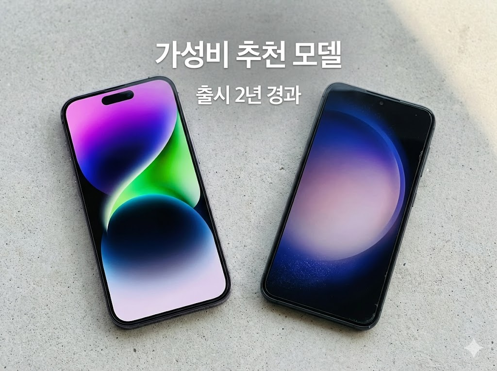 스마트폰 성능은 이미 상향 평준화 되었습니다. 이 때문에 출시된 지 2년 ~ 2년 6개월이 지난 플래그십 모델(예: 아이폰 14, 갤럭시 S23)이 가성비가 좋아요.
